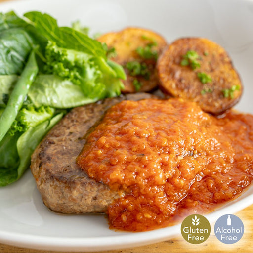 詳細を全部見るグルテンフリー 一度食べたら、忘れられない!究極のベジミートボロネーゼ。たっぷりのトマトとたくさんの野菜をじっくり煮込んだソースに仕上げました。トマトの酸味とハーブの香りが絶妙に調和した、奥深い味わい。グルテンフリー・五葷抜き・アルコールフリー。※パスタ麺はついておりません。 原材料:トマ...